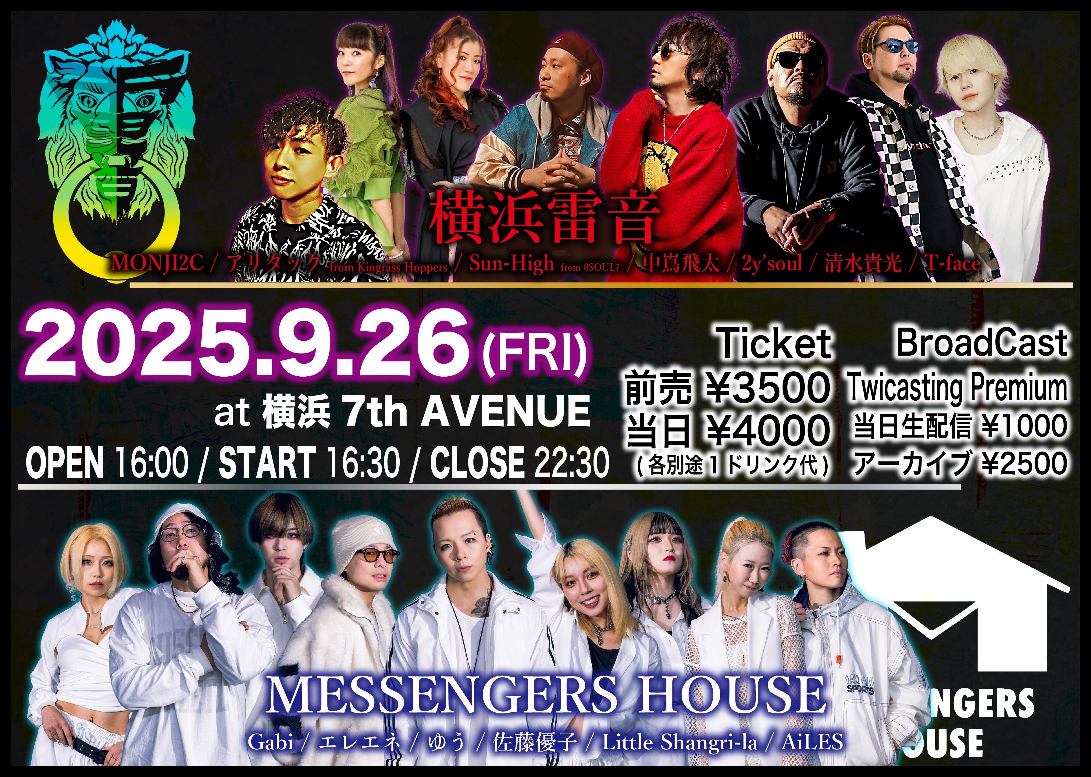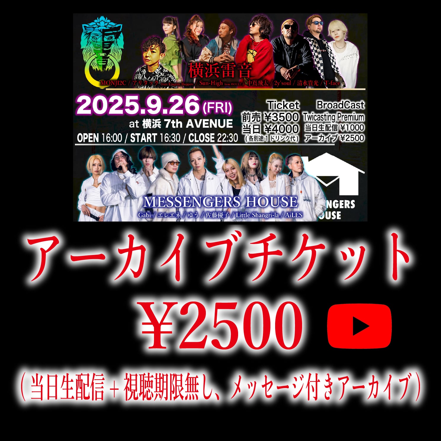 2025.9.26(金) 雷音×MESSENGERS HOUSEのアーカイブチケットになります。