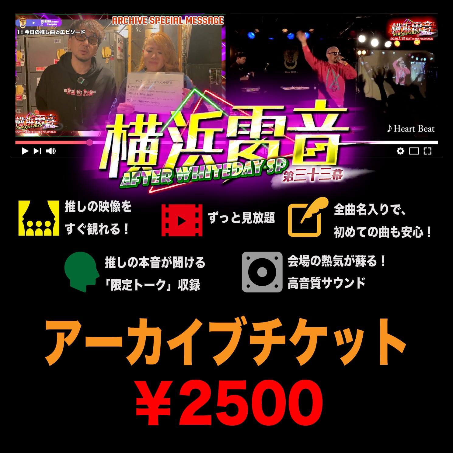 ライブの熱狂を、最高画質・高音質で永遠に。 2026年3月28日開催の「横浜雷音 -第三十三幕-」をまるごと収録した、視聴期限なしのデジタルチケットです。