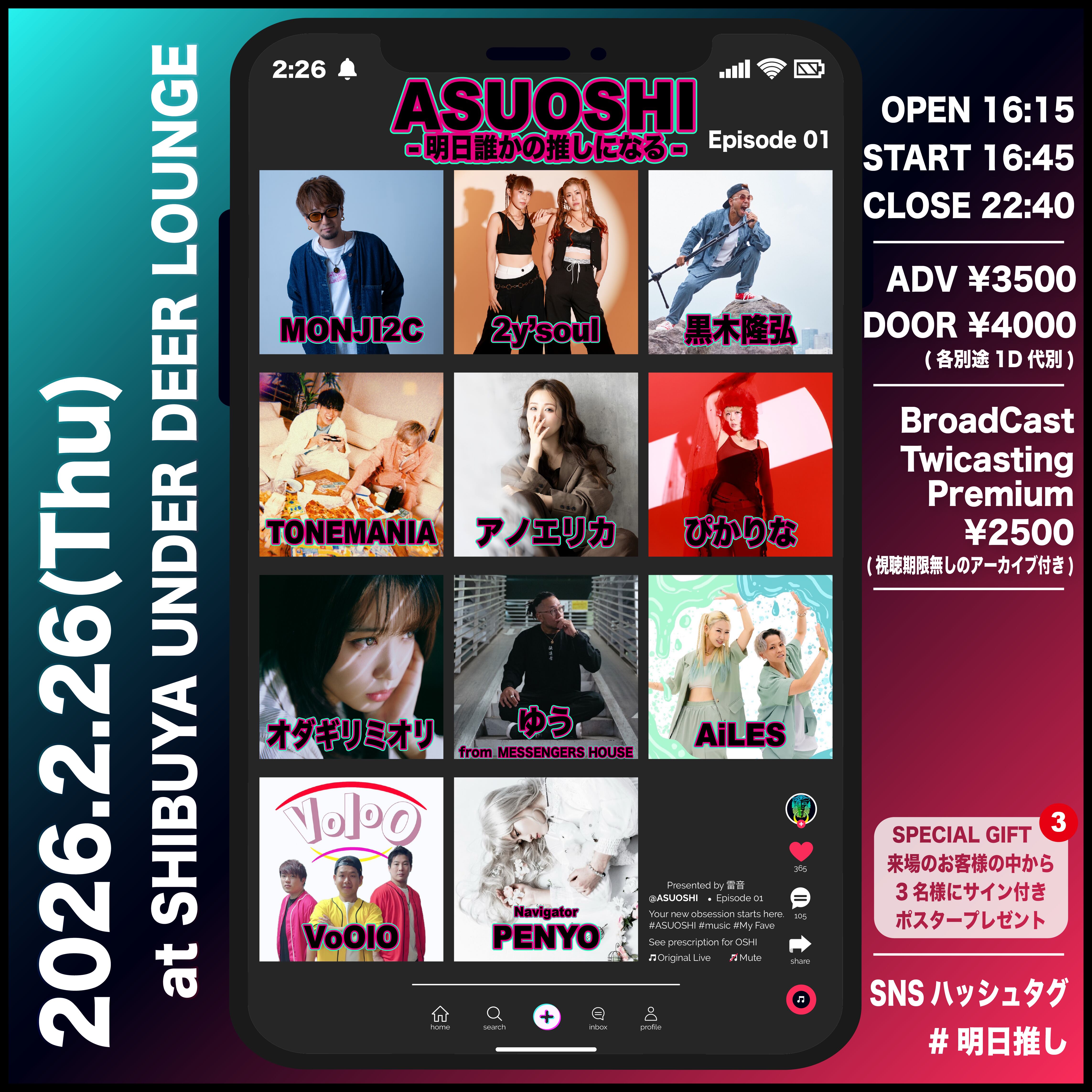 2026.2.26(木) ASUOSHI -明日誰かの推しになる- Episode.1 アーカイブチケット